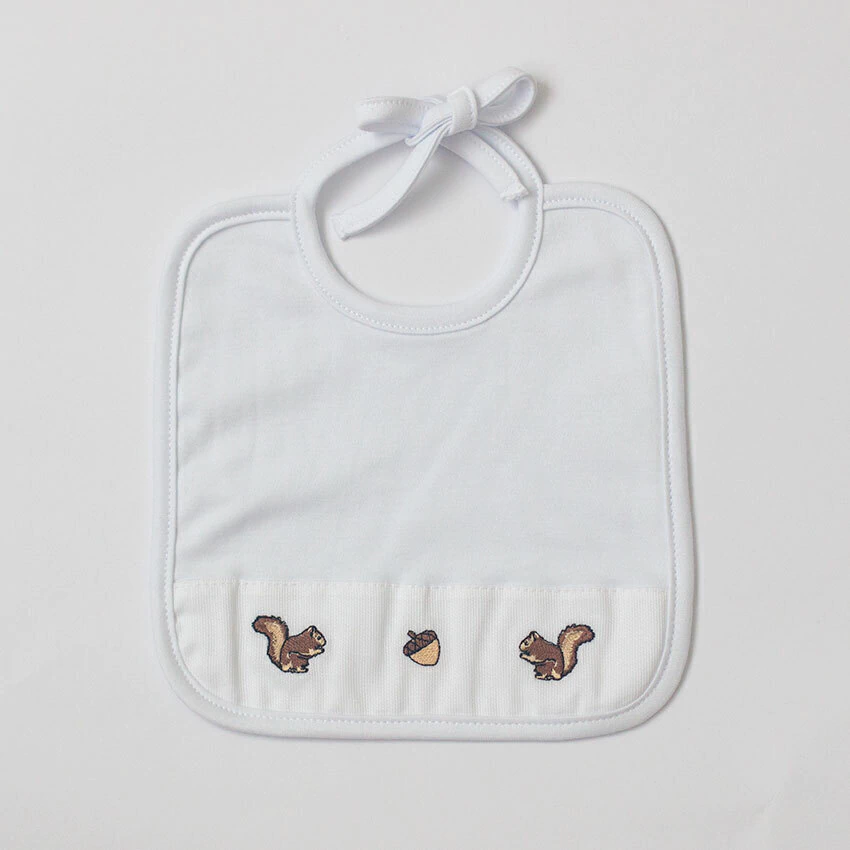 Babador com lindo bordado de esquilo, confeccionado em suedine duplo, com toque muito macio e suave. Ideal para o dia a dia para proteger a roupinha do bebê e aumentar o nível de fofura!
