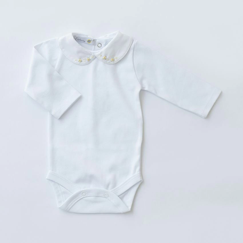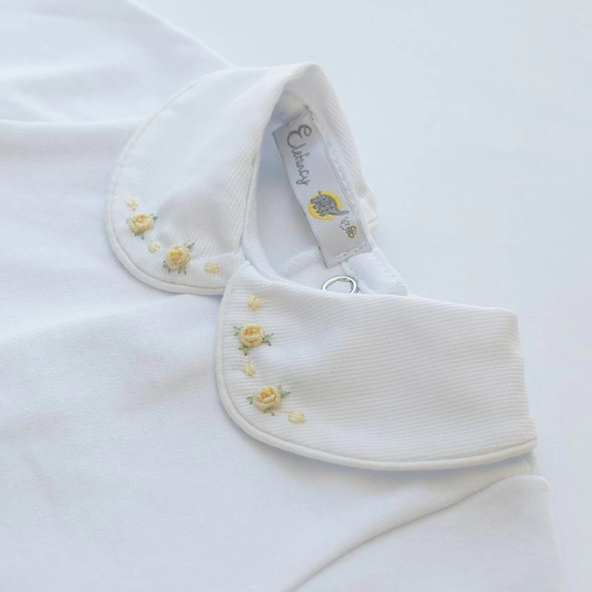 Body em suedine 100% algodão, com toque muito macio e suave, ideal para pele delicada e sensível do recém-nascido, com uma linda gola com bordado manual.