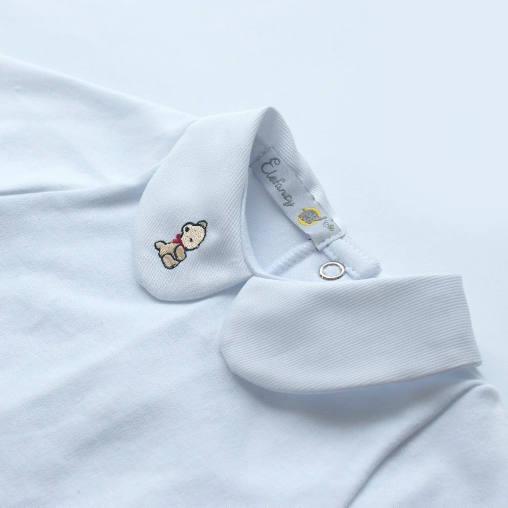 Body em suedine 100% algodão, com toque muito macio e suave, ideal para pele delicada e sensível do recém-nascido, com uma linda gola redonda com lindo bordado de ursinha.