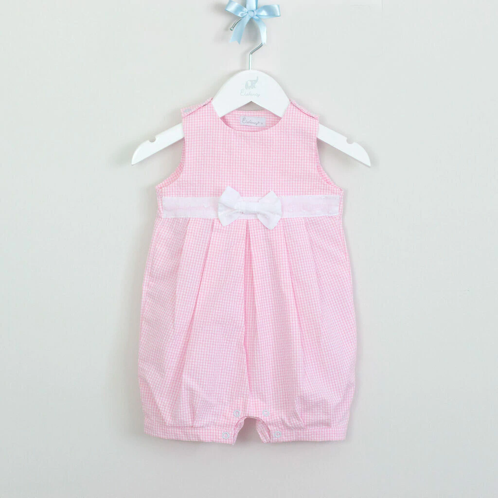 Jardineira infantil em tecido 100% algodão com lindo laço aumentando o grau de fofura. Tecido delicado ana ruga em xadrez que confere charme e elegância para sua princesa.