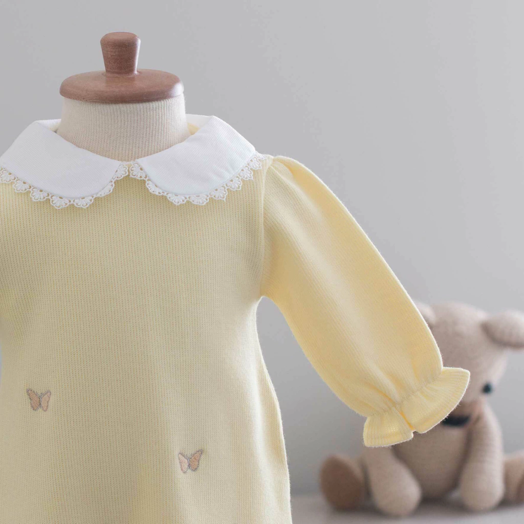 Macacão Borboleta traz a elegância junto com o conforto para sua princesa. Com modelagem clássica e lindo bordado de borboleta que confere um charme adicional ao macacão. Confeccionado em tricotil, uma malha em algodão antialérgica, que remete ao tricô, proporcionando leveza e suavidade ideal para todas as estações do ano.