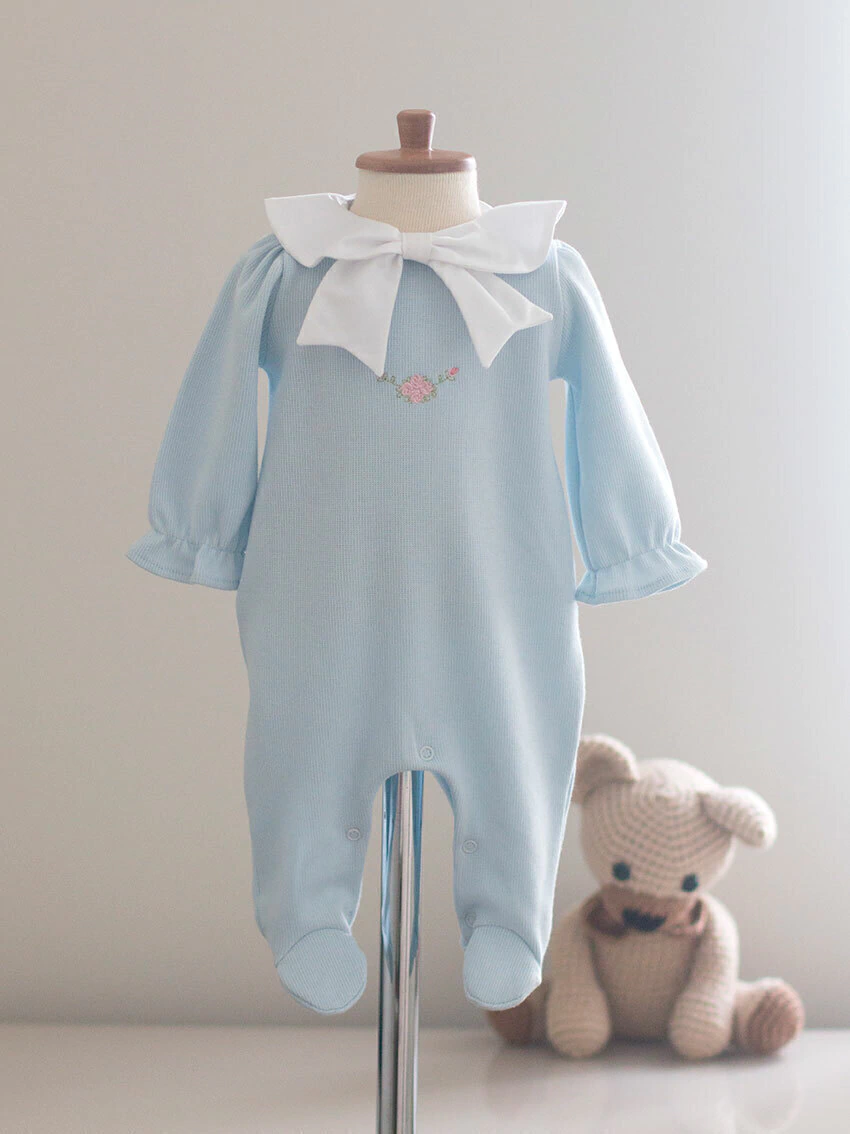 Macacão Chloe traz a elegância junto com o conforto para sua princesa. Com modelagem clássica, linda gola em formato de laço e um delicado bordado que confere um charme adicional ao macacão. Confeccionado em tricotil, uma malha em algodão antialérgica, que remete ao tricô, proporcionando leveza e suavidade ideal para todas as estações do ano.