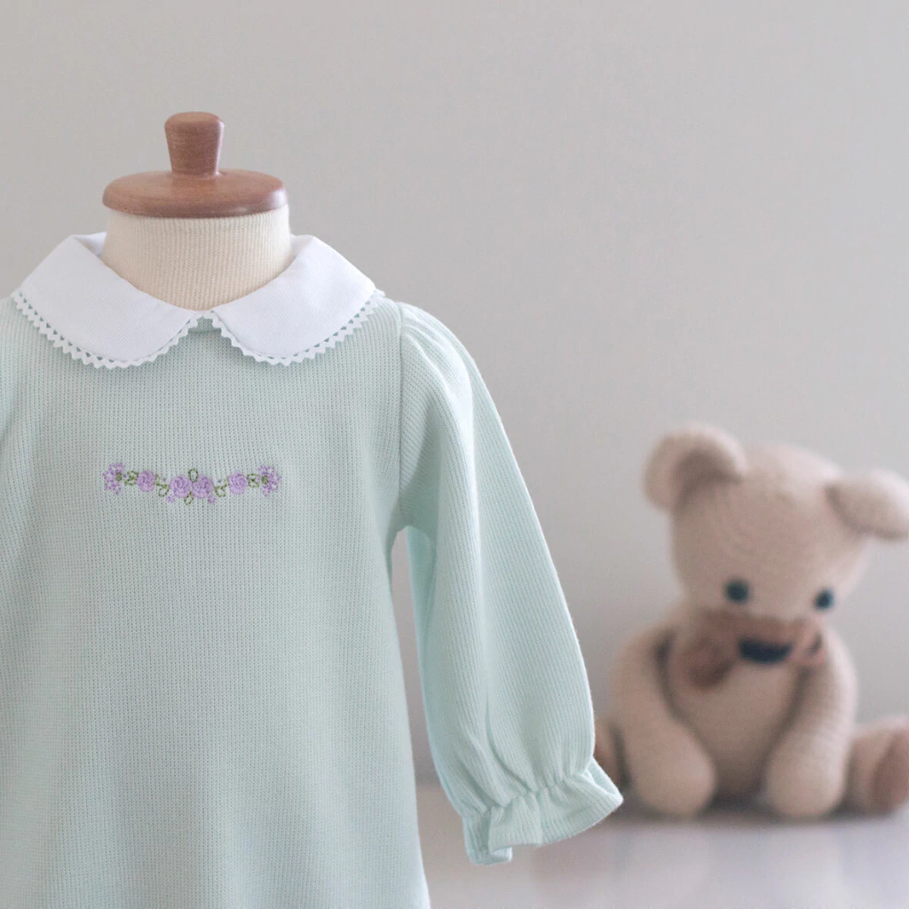Macacão Sofie traz a elegância junto com o conforto para sua princesa. Com modelagem clássica, linda gola com aplicação de renda e um delicado bordado que confere um charme adicional ao macacão. Confeccionado em tricotil, uma malha em algodão antialérgica, que remete ao tricô, proporcionando leveza e suavidade ideal para todas as estações do ano.
