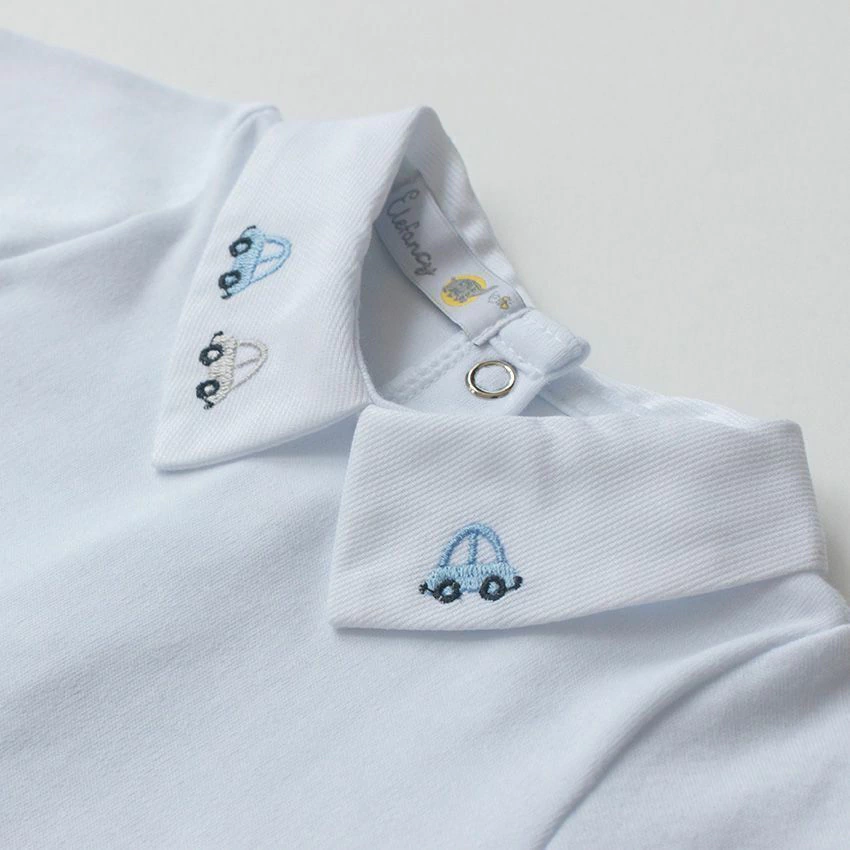 Body em suedine 100% algodão, com toque muito macio e suave, ideal para pele delicada e sensível do recém-nascido, com lindo bordado de carrinhos na gola.