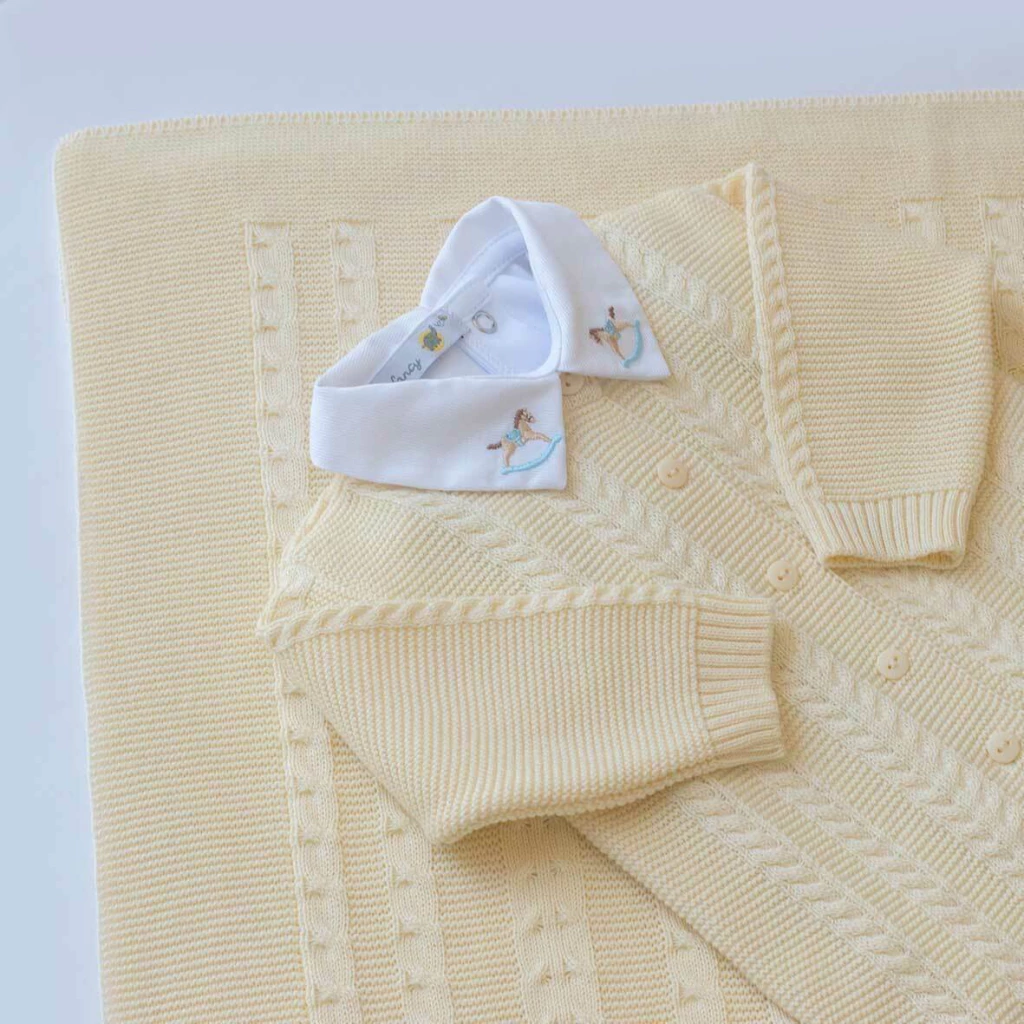 Macacão em tricô hipoalergênico com toque macio e suave ideal para saída maternidade e nos primeiros dias do bebê. Coleção exclusiva desenvolvida com muito carinho para proporcionar conforto e elegância para seu bebê.
